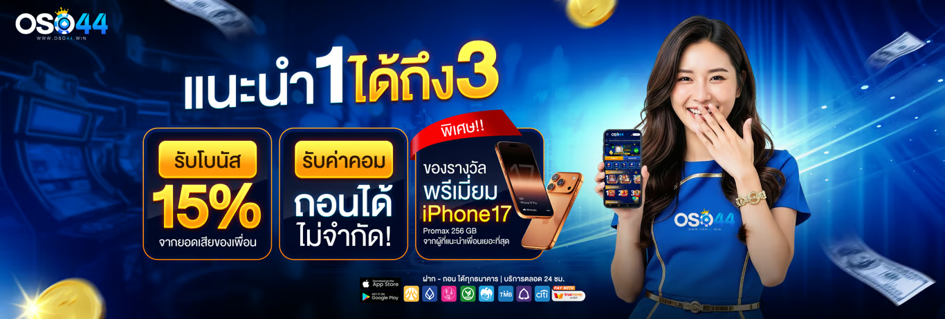ถ้าคุณกำลังมองหาเว็บพนันออนไลน์ที่มอบโปรโมชั่นสุดคุ้มค่า OSO44 คือคำตอบที่ใช่สำหรับคุณ! เว็บไซต์ของเรามีโปรโมชั่นต้อนรับสมาชิกใหม่สุดพิเศษที่ให้โบนัส 100% สำหรับการฝากครั้งแรก นั่นหมายความว่าคุณจะได้รับเงินเพิ่มเป็นสองเท่าทันทีที่เริ่มเล่น ยกตัวอย่างเช่น หากคุณฝากเงิน 1,000 บาท คุณจะได้รับเครดิตเพิ่มอีก 1,000 บาท รวมเป็น 2,000 บาทที่สามารถนำไปเล่นเกมต่างๆ ได้ทันที