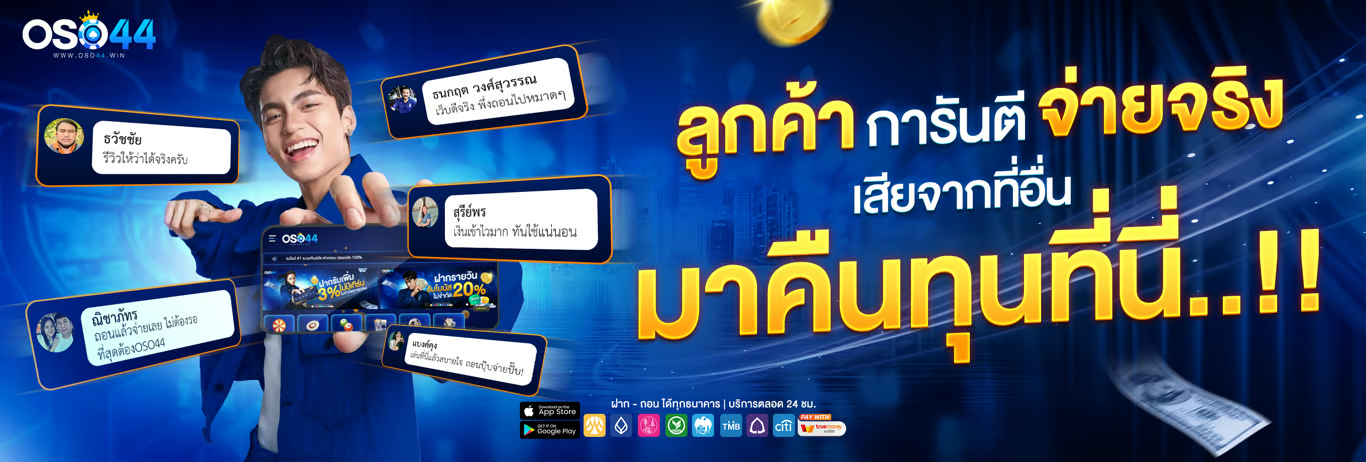 OSO44 ได้รับการยอมรับว่าเป็นหนึ่งในเว็บพนันออนไลน์ชั้นนำที่ให้บริการครบวงจรตลอด 24 ชั่วโมง เราภูมิใจนำเสนอประสบการณ์การเดิมพันที่หลากหลายให้กับสมาชิกทุกท่าน ไม่ว่าคุณจะชื่นชอบการเดิมพันกีฬา เกมคาสิโน หรือสล็อตออนไลน์ เราก็มีให้ครบครัน